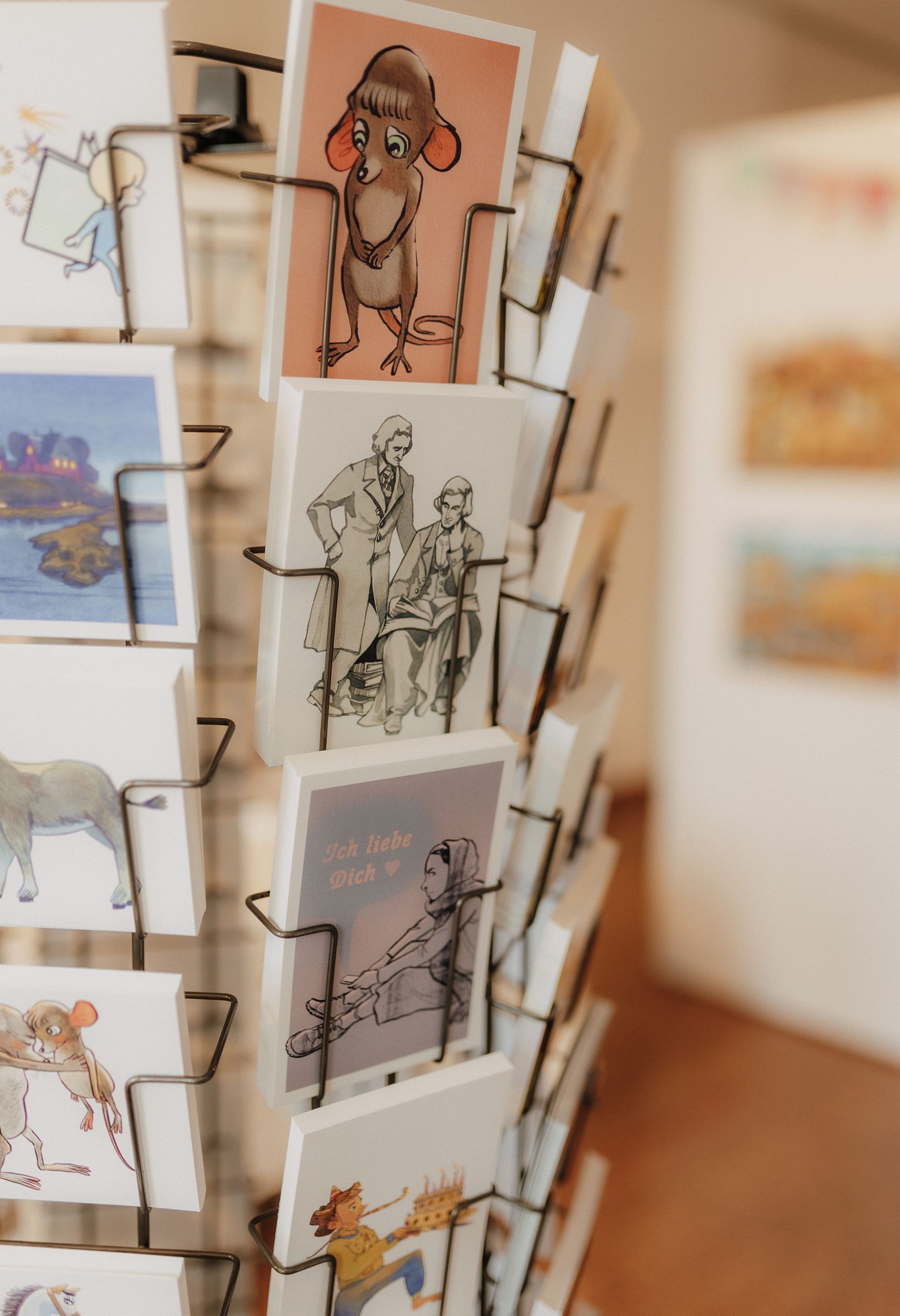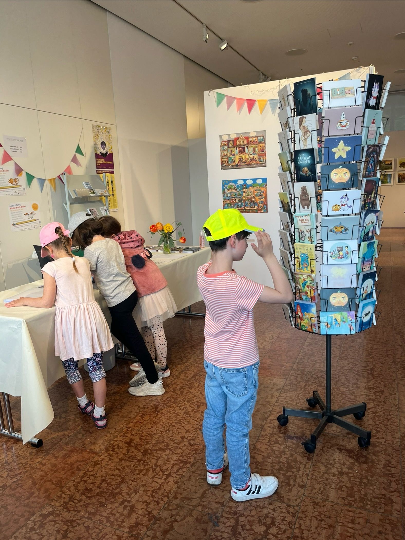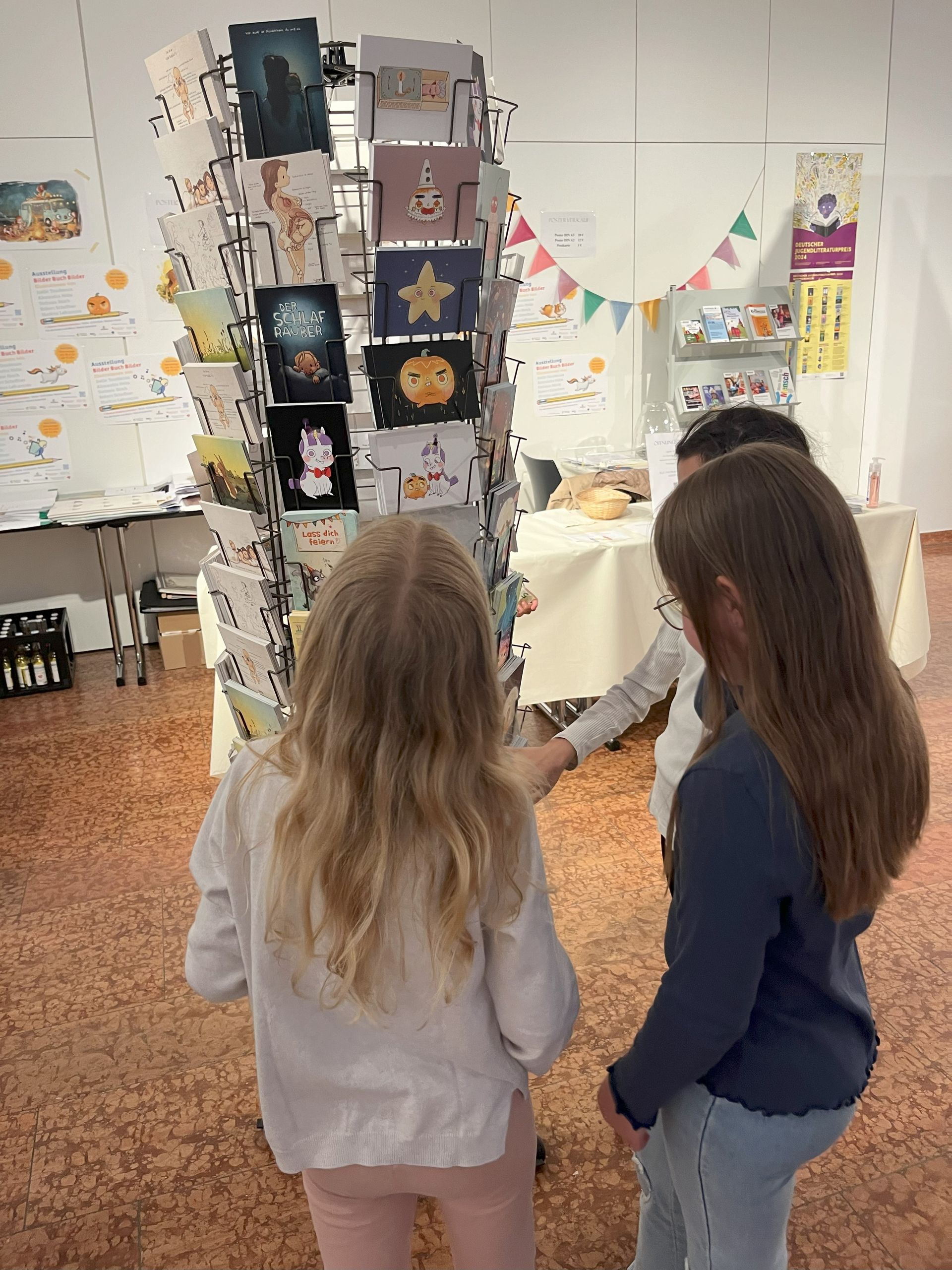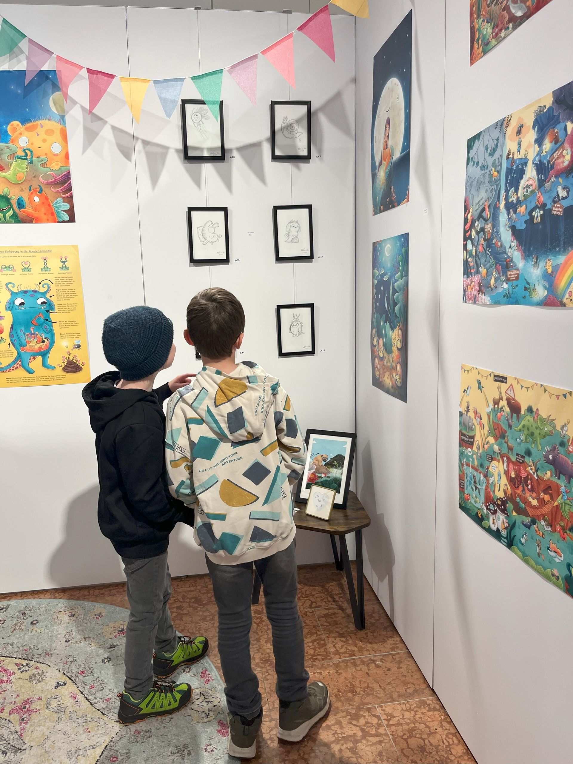 Während der Öffnungszeiten können die exklusiven und limitierten Originale, Drucke, Poster und Postkarten der Bilderbuchkünstler/innen erworben werden.