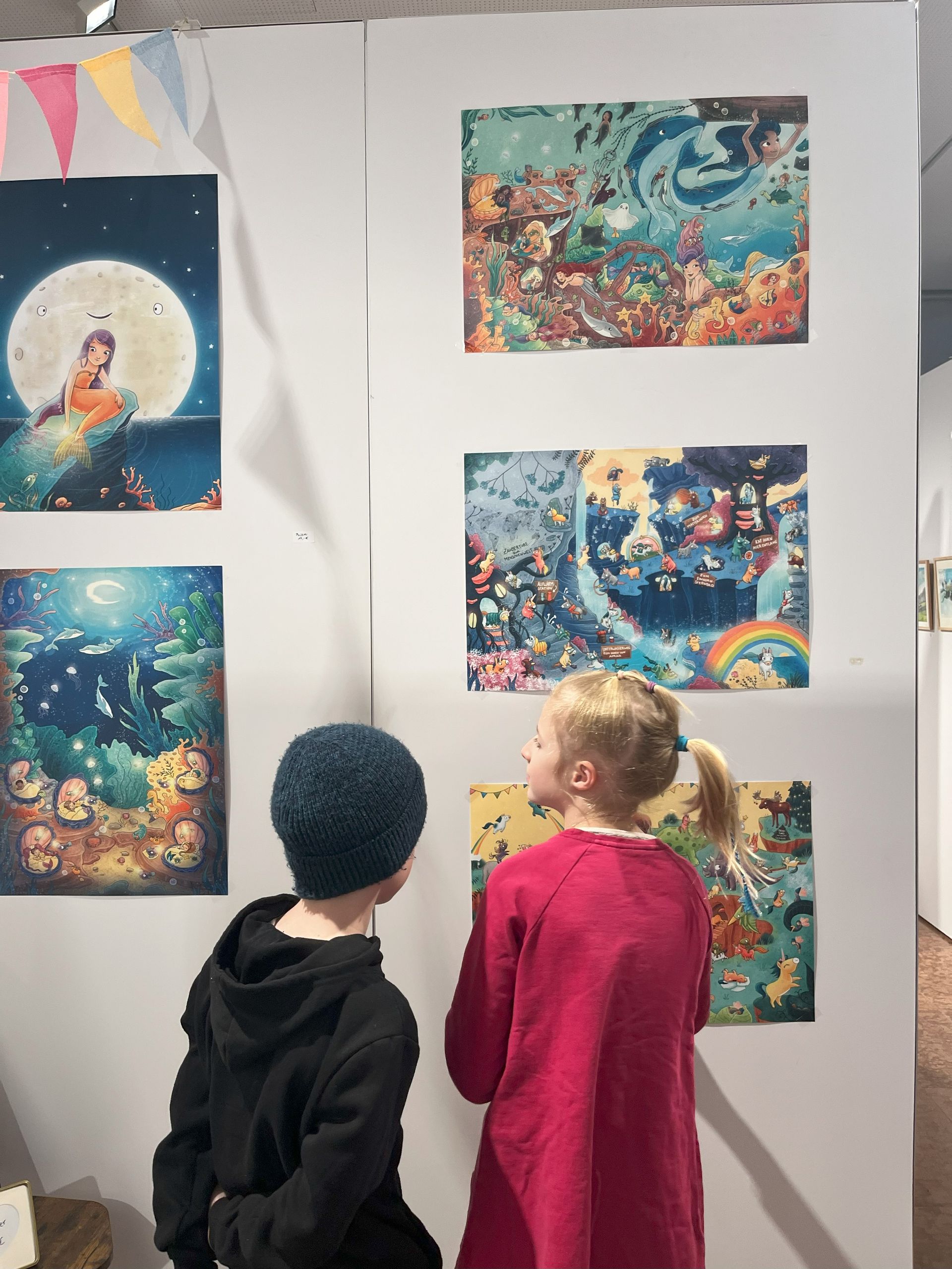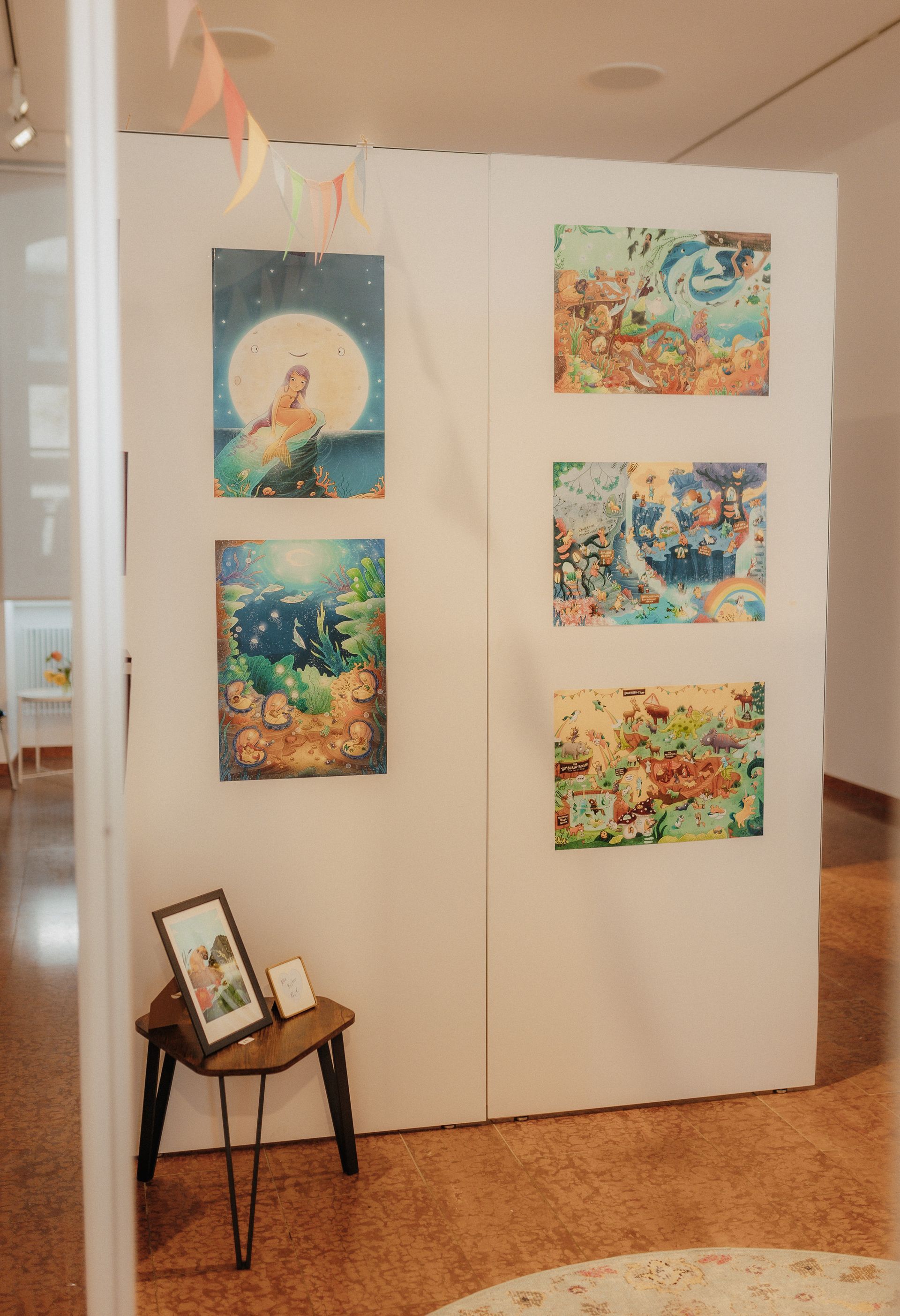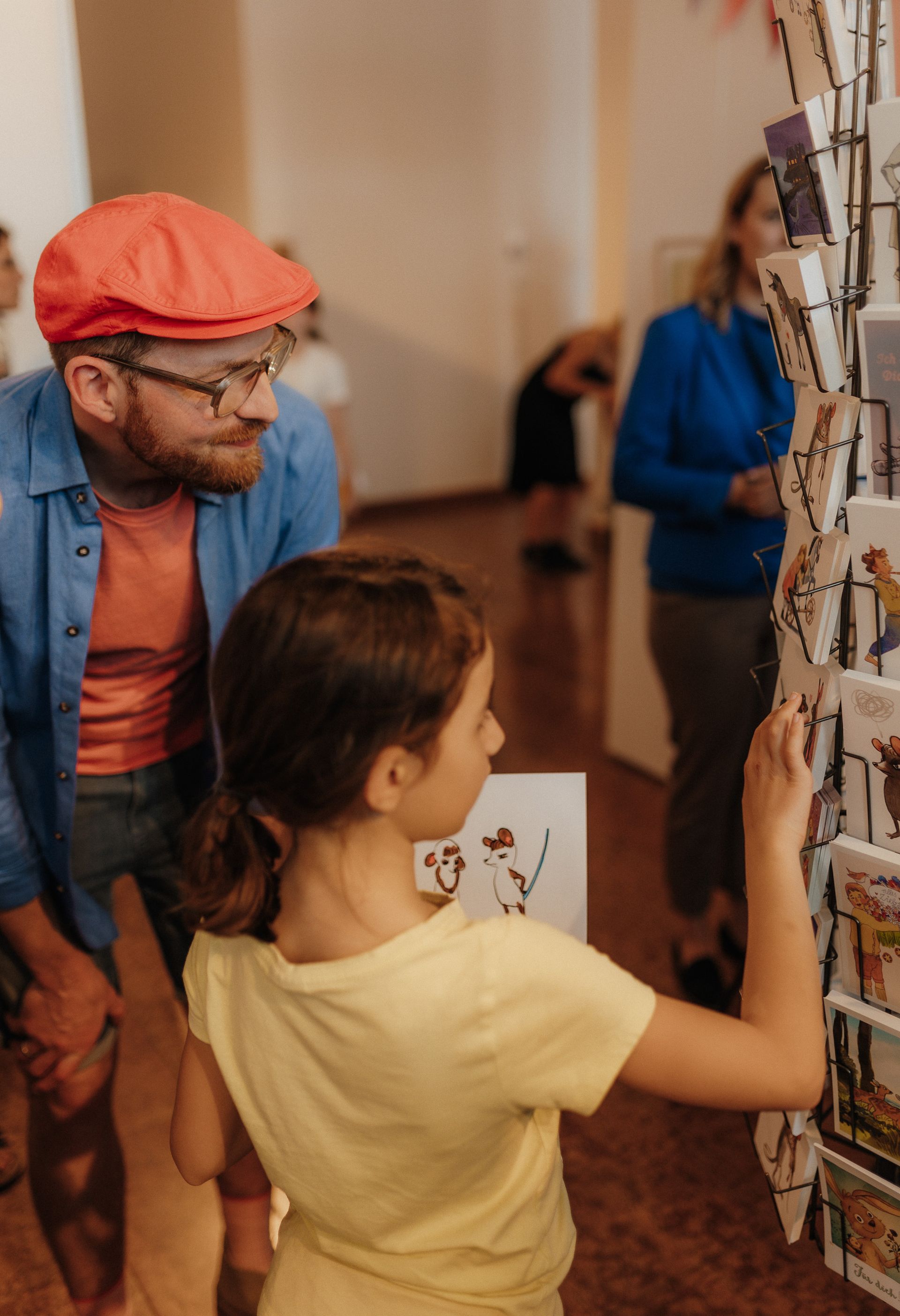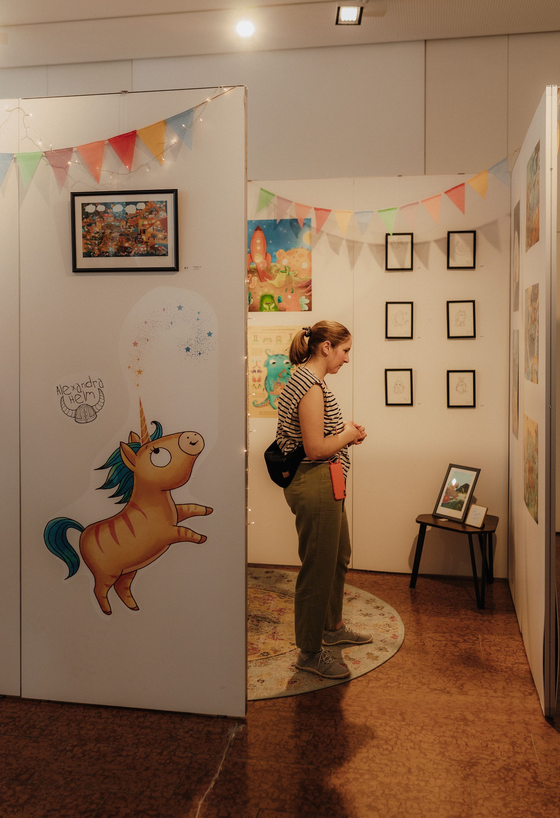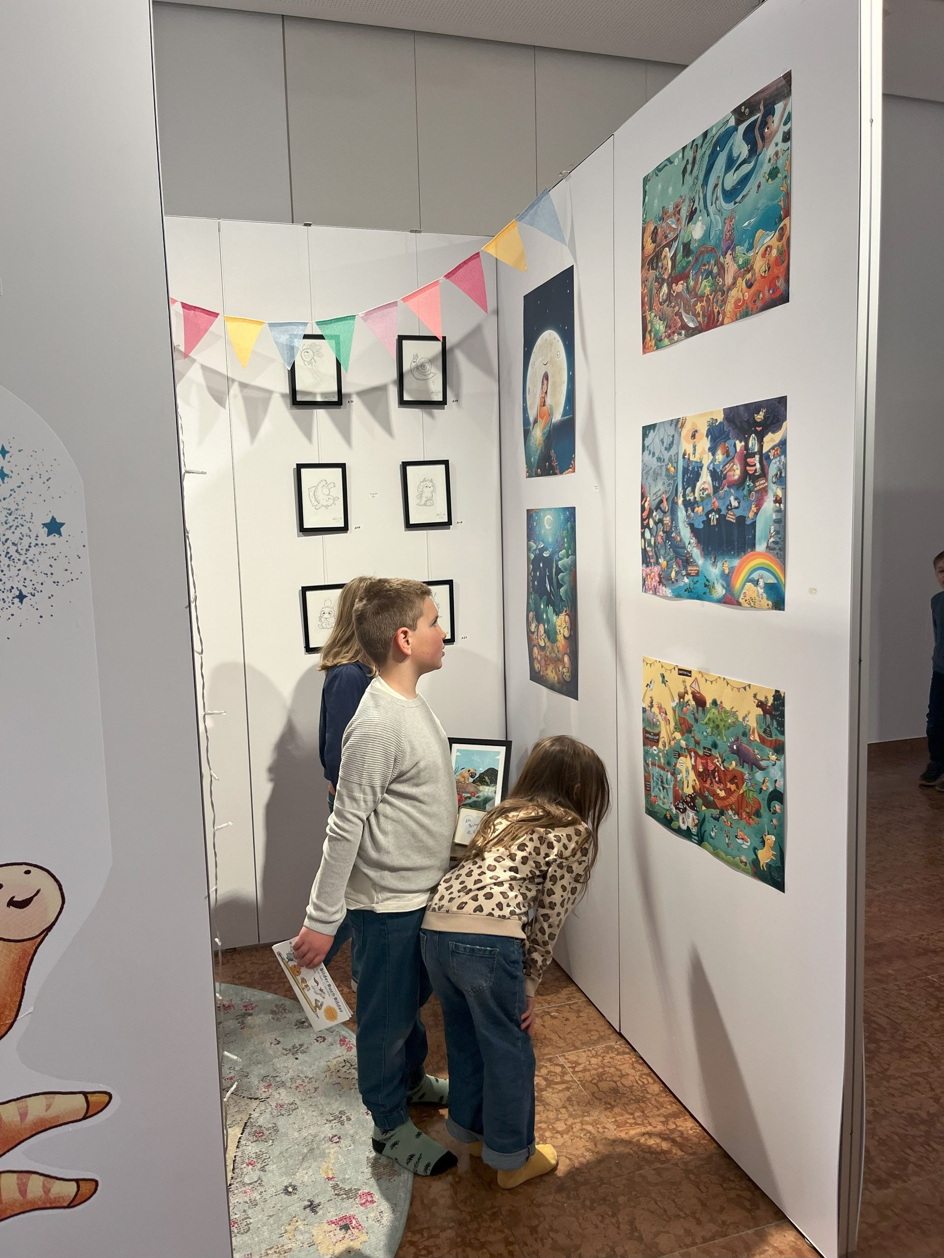 Während der Öffnungszeiten können die exklusiven und limitierten Originale, Drucke, Poster und Postkarten der Bilderbuchkünstler/innen erworben werden.