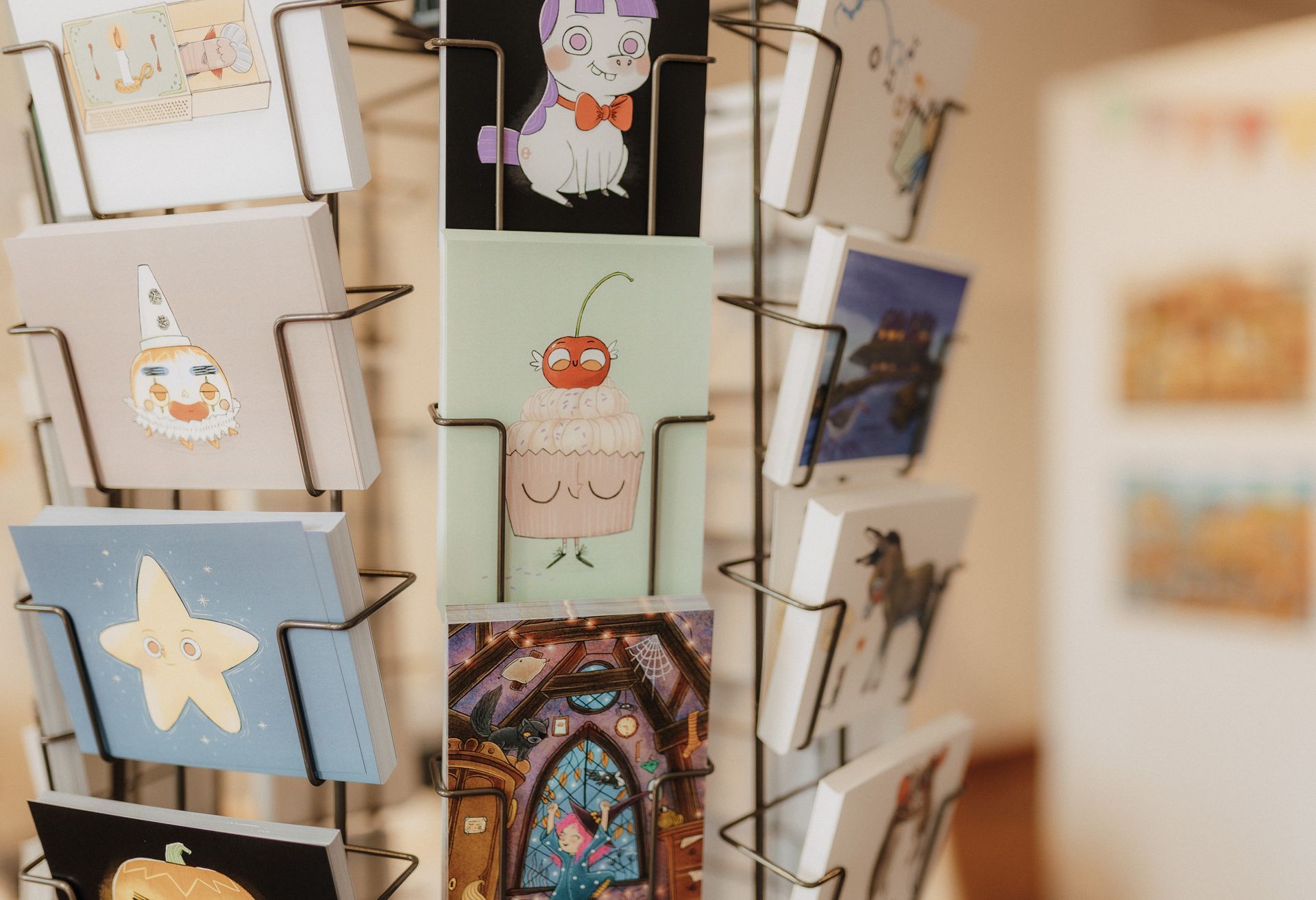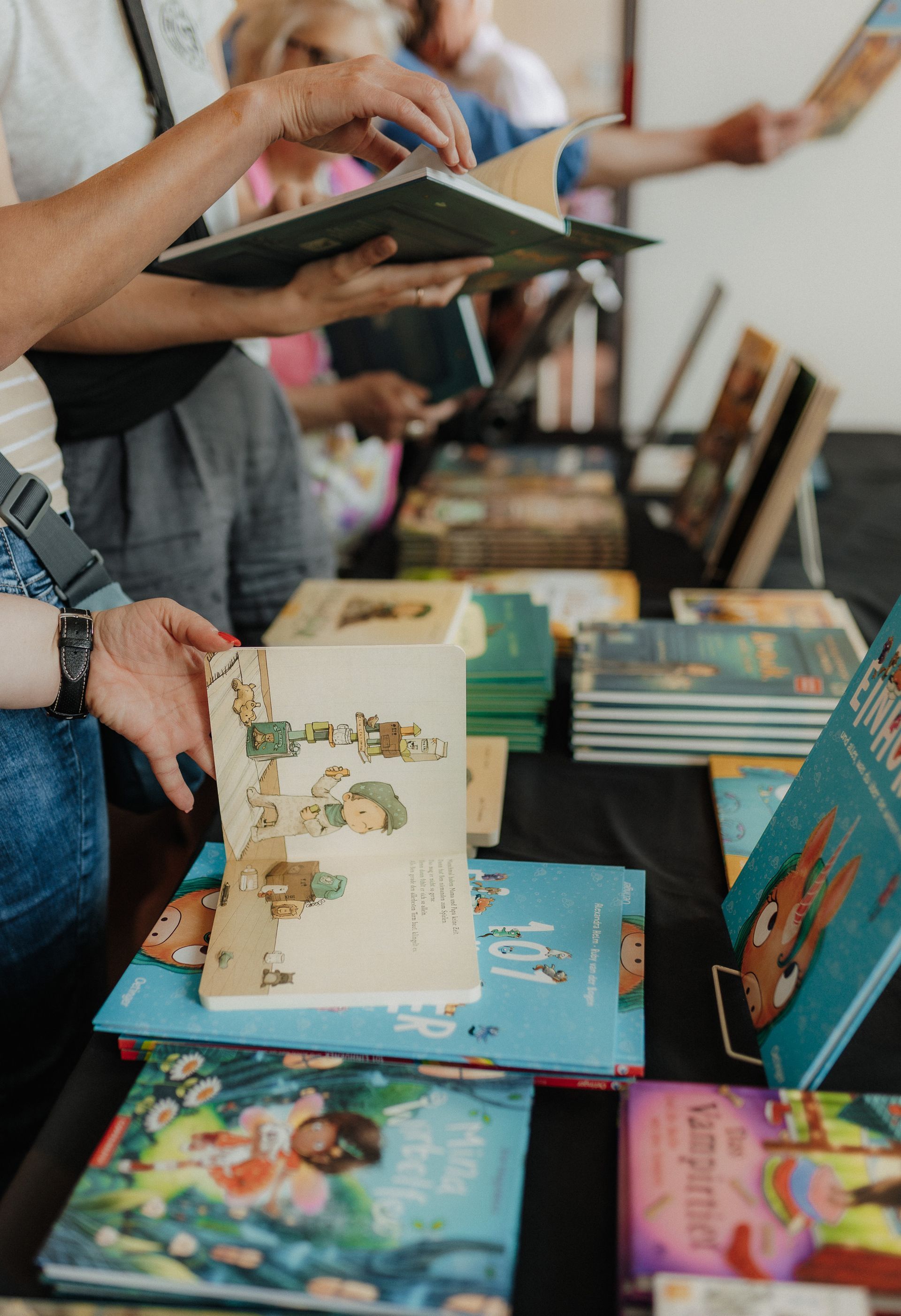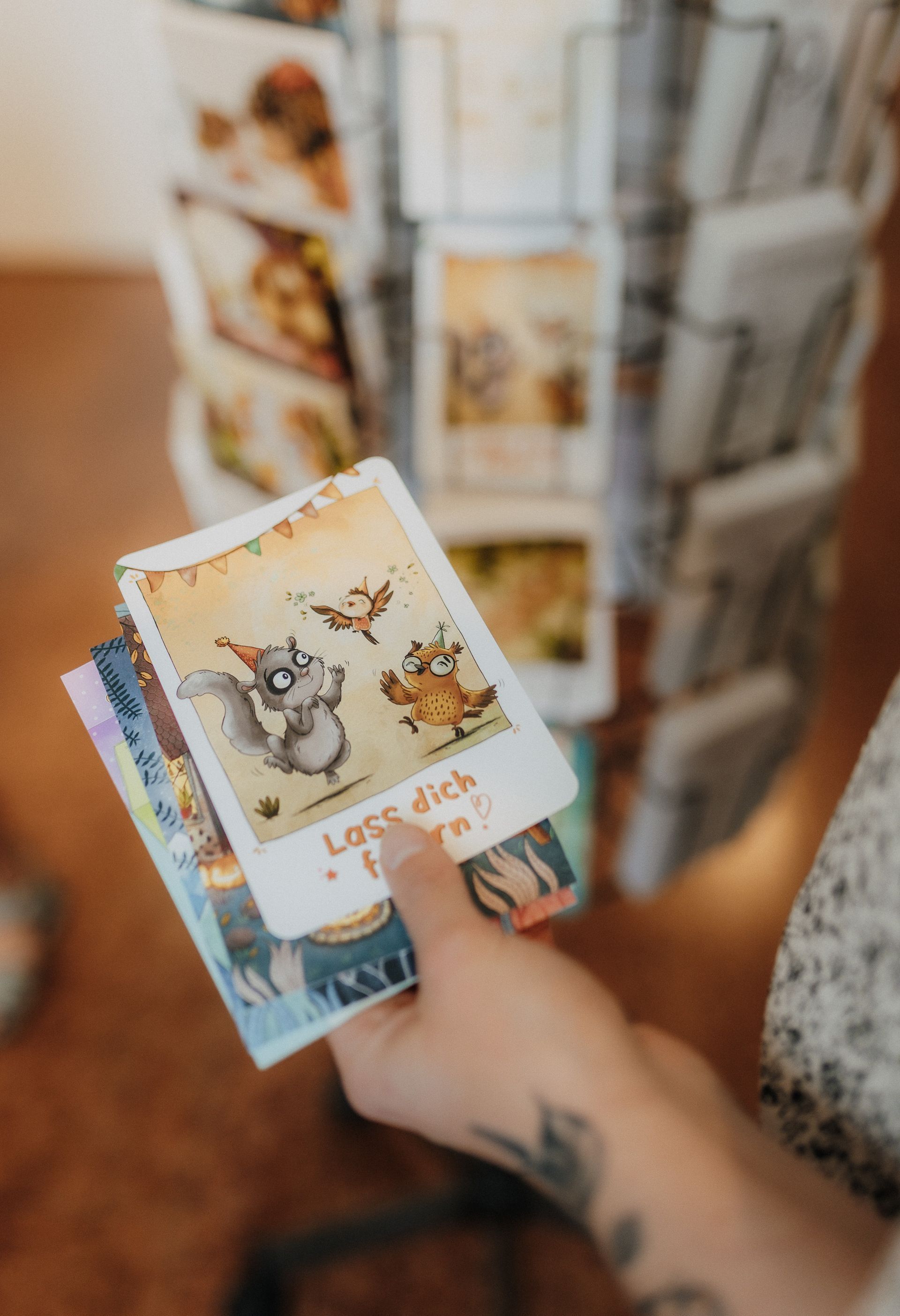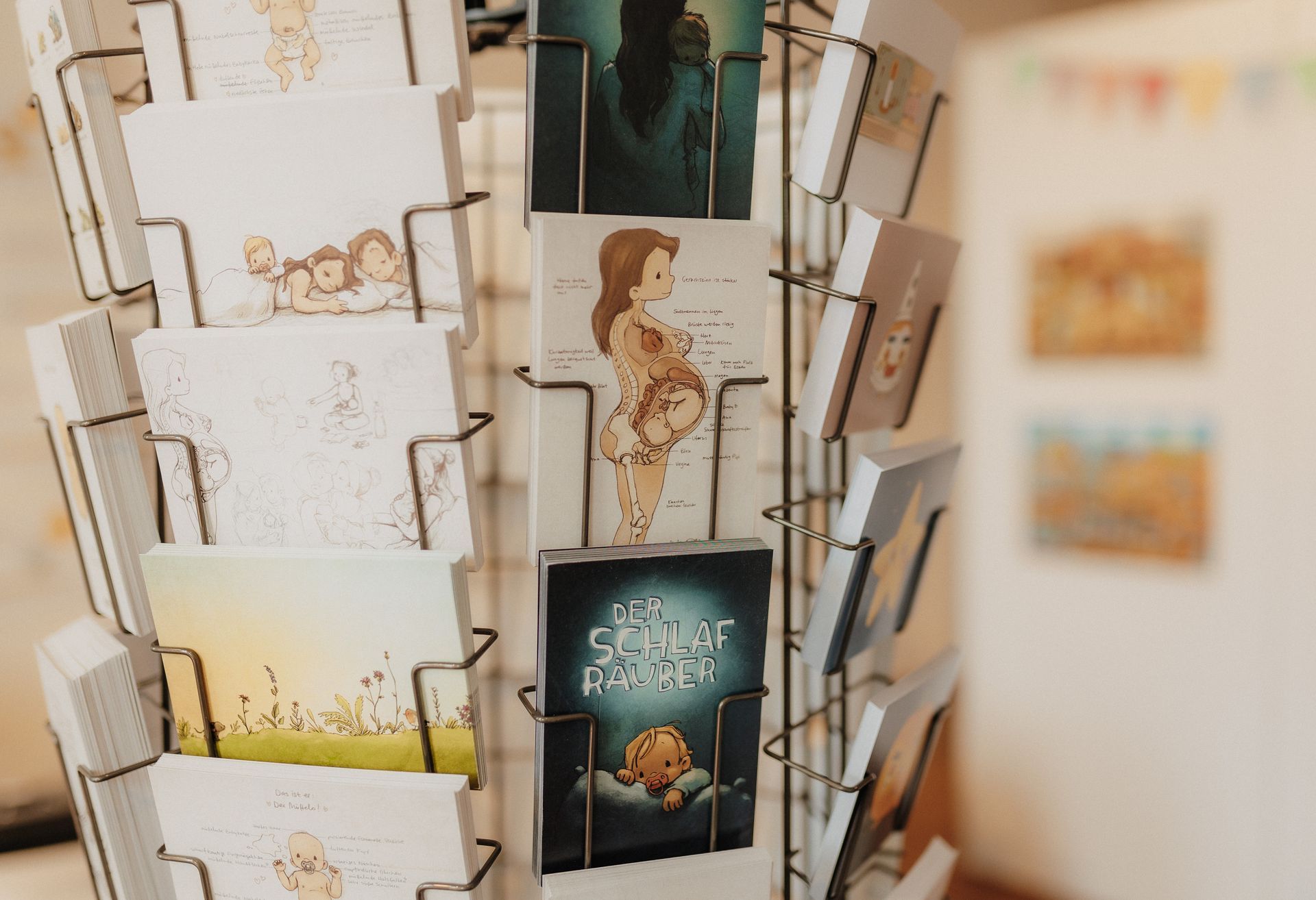 Während der Öffnungszeiten können die exklusiven und limitierten Originale, Drucke, Poster und Postkarten der Bilderbuchkünstler/innen erworben werden.