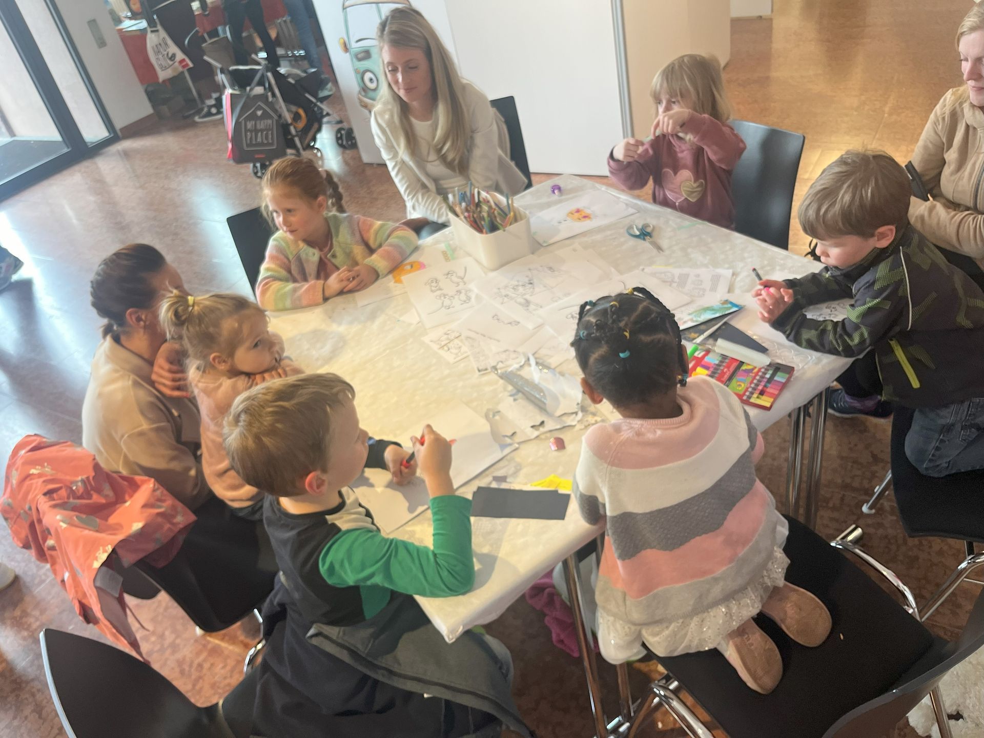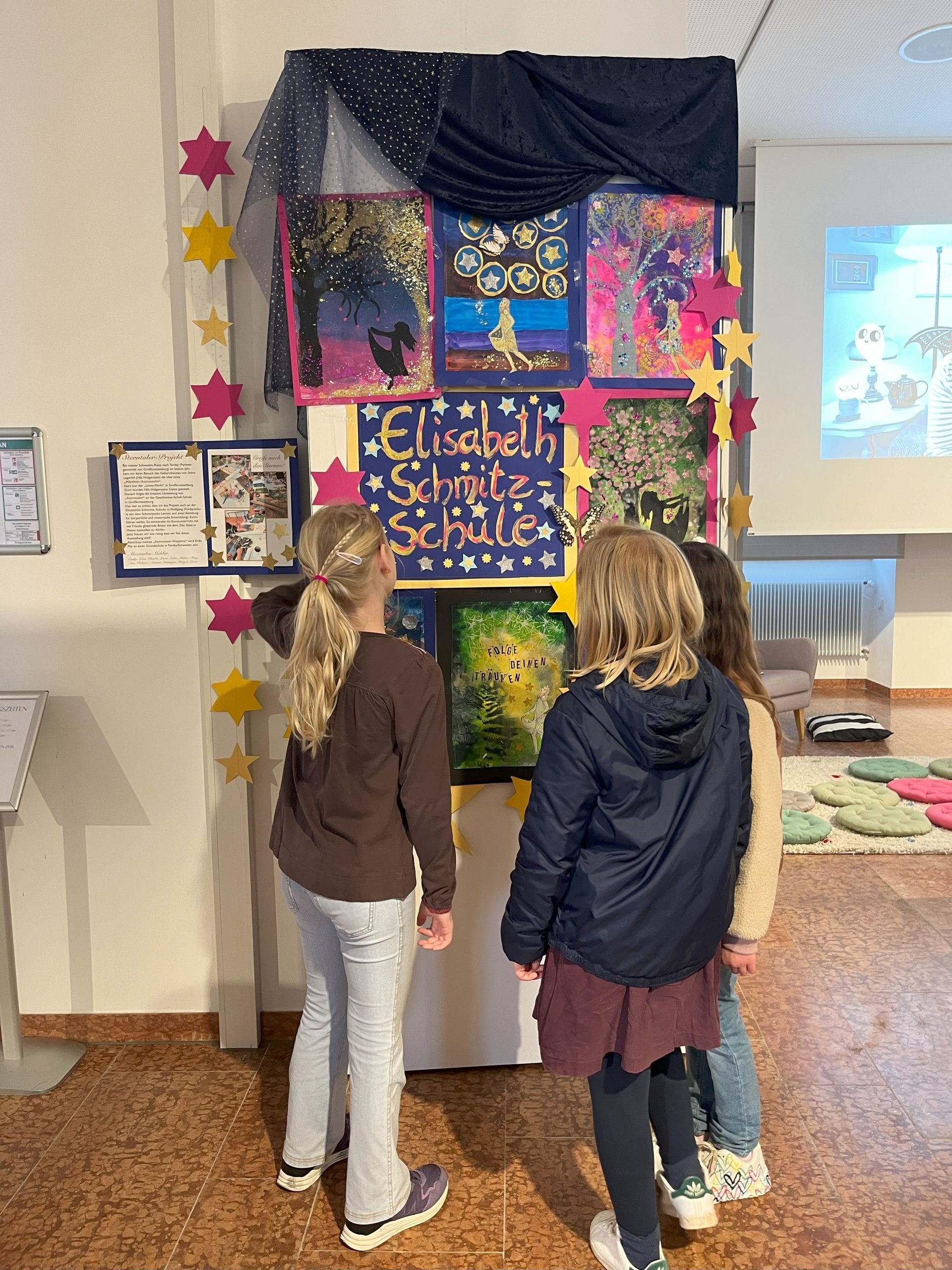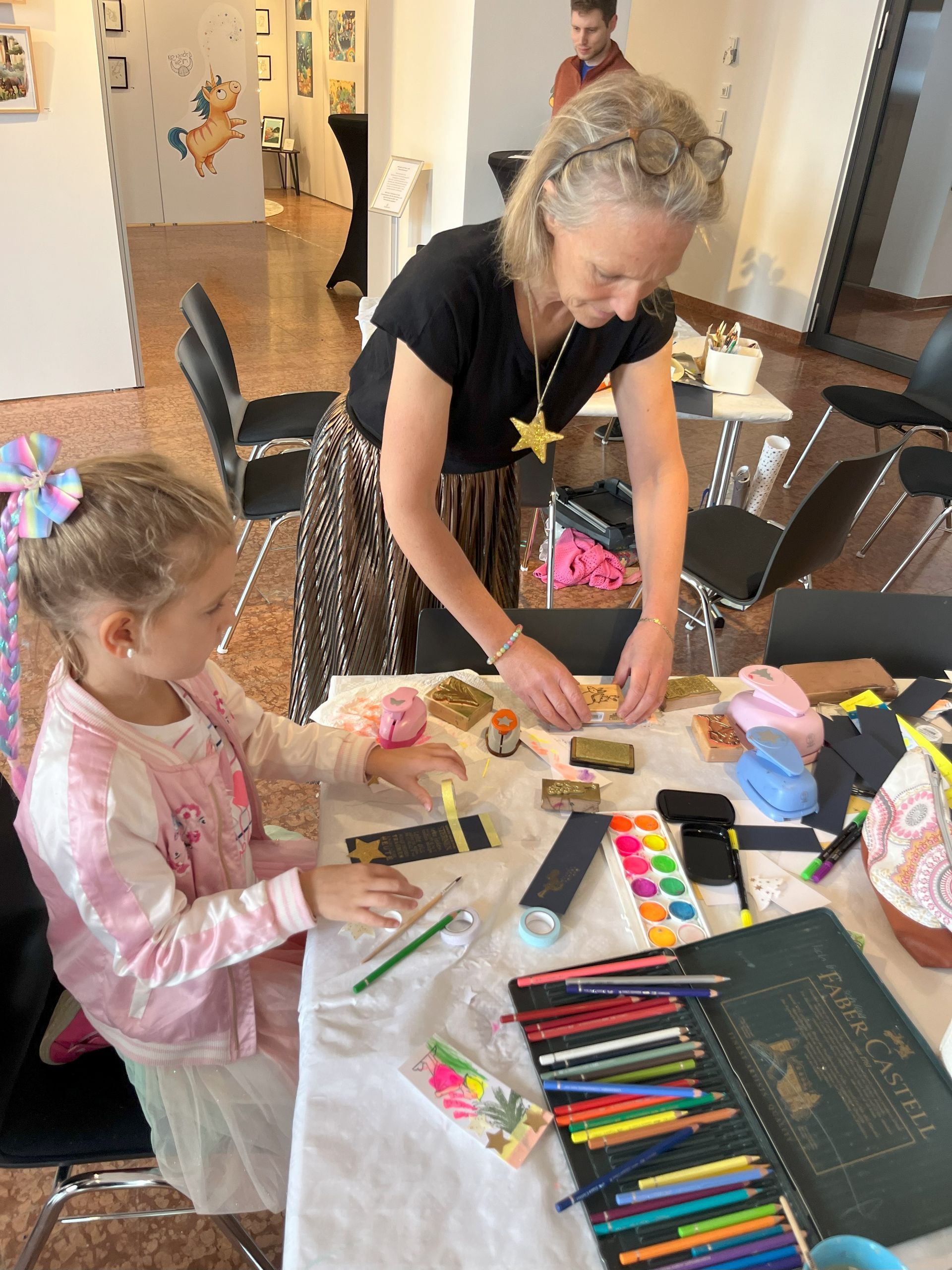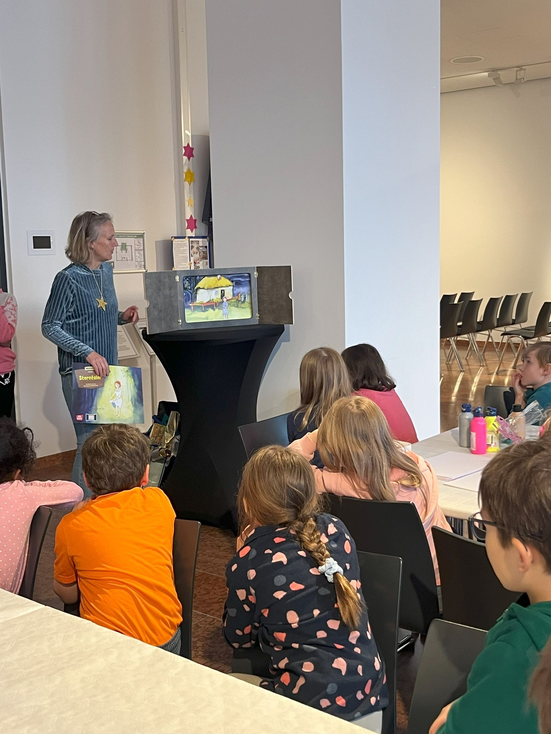 Sterntaler-Projekt - Die Pädagogin und Buchhändlerin Alexandra Mohler liest aus "Sterntaler" und gestaltet im Anschluss mit den Kindern ihre eigenen Werke. Diese können die Kinder mitnehmen, oder im Lesebereich der Ausstellung ausstellen. Das Angebot findet fortlaufend statt - die Familien können jederzeit dazu kommen.