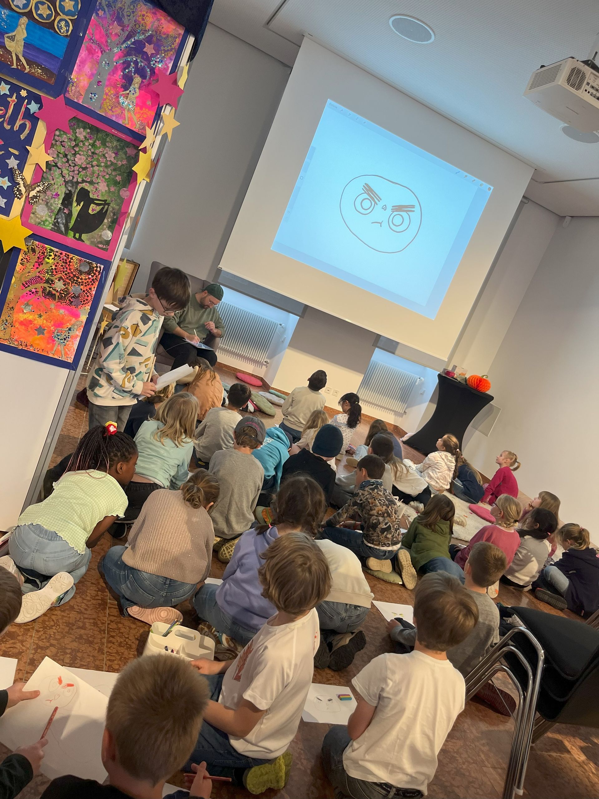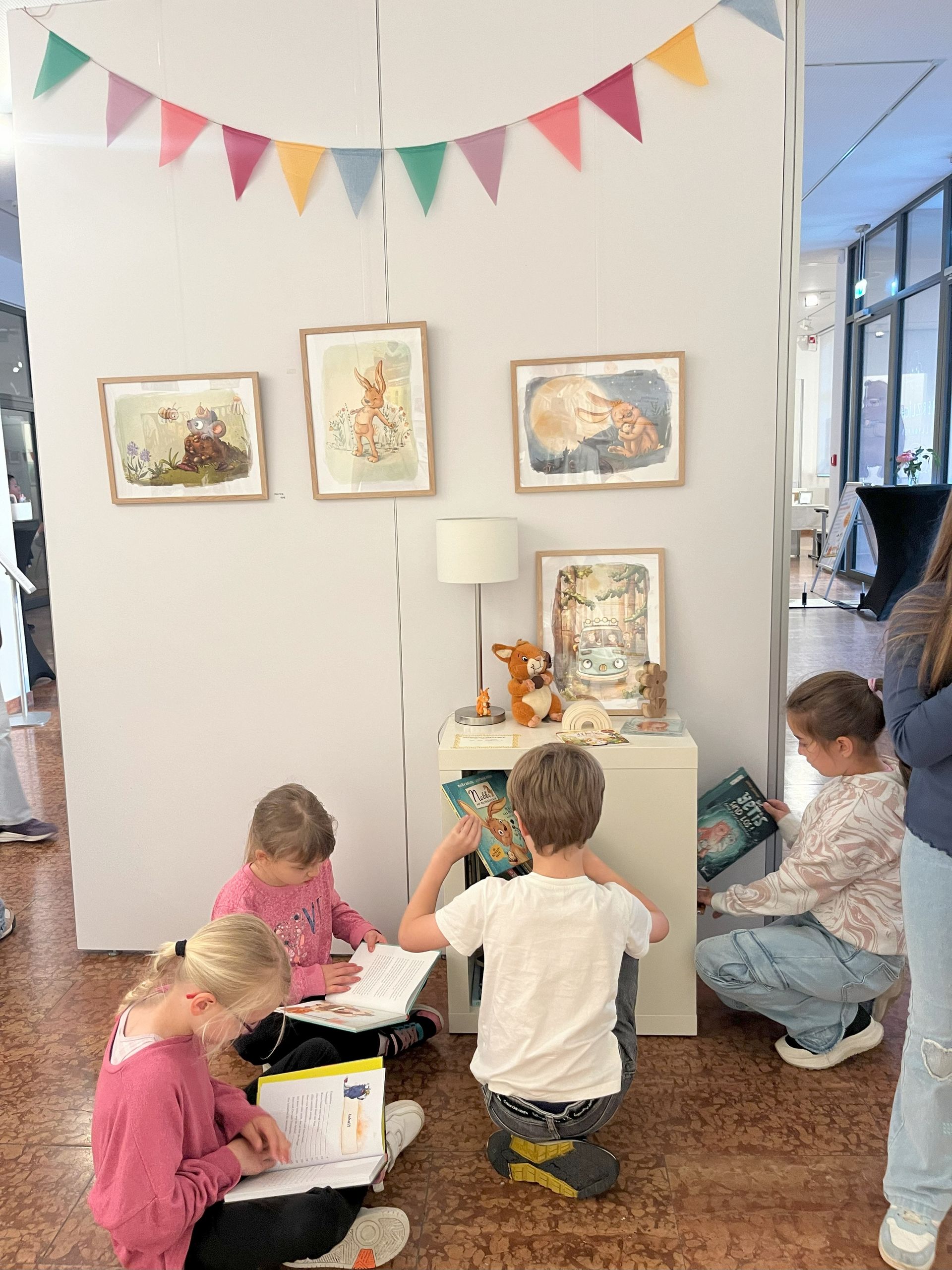 Insgesamt besuchten 175 Kinder aus den Klassenstufen 1 und 2 die Ausstellung, hörten eine Lesung und erfuhren alles Wichtige über die Entstehung eines Buches! Zu Besuch waren die Eichendorfschule, Paul-Gerhardt-Schule, Freie Waldorfschule Hanau, Robinsonschule.
